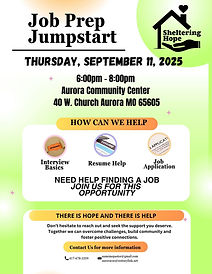 In March 2025, Sheltering Hope hosted a Community Resource Fair that brought together service providers from across Aurora and Lawrence County. Through conversations with attendees, we gained clear insight into the community’s most pressing needs, including transportation, housing, food, clothing, legal documents, counseling, mentorship, and continuing education. These findings now guide our efforts as we develop programs that meet people where they are and support their path toward stability.
